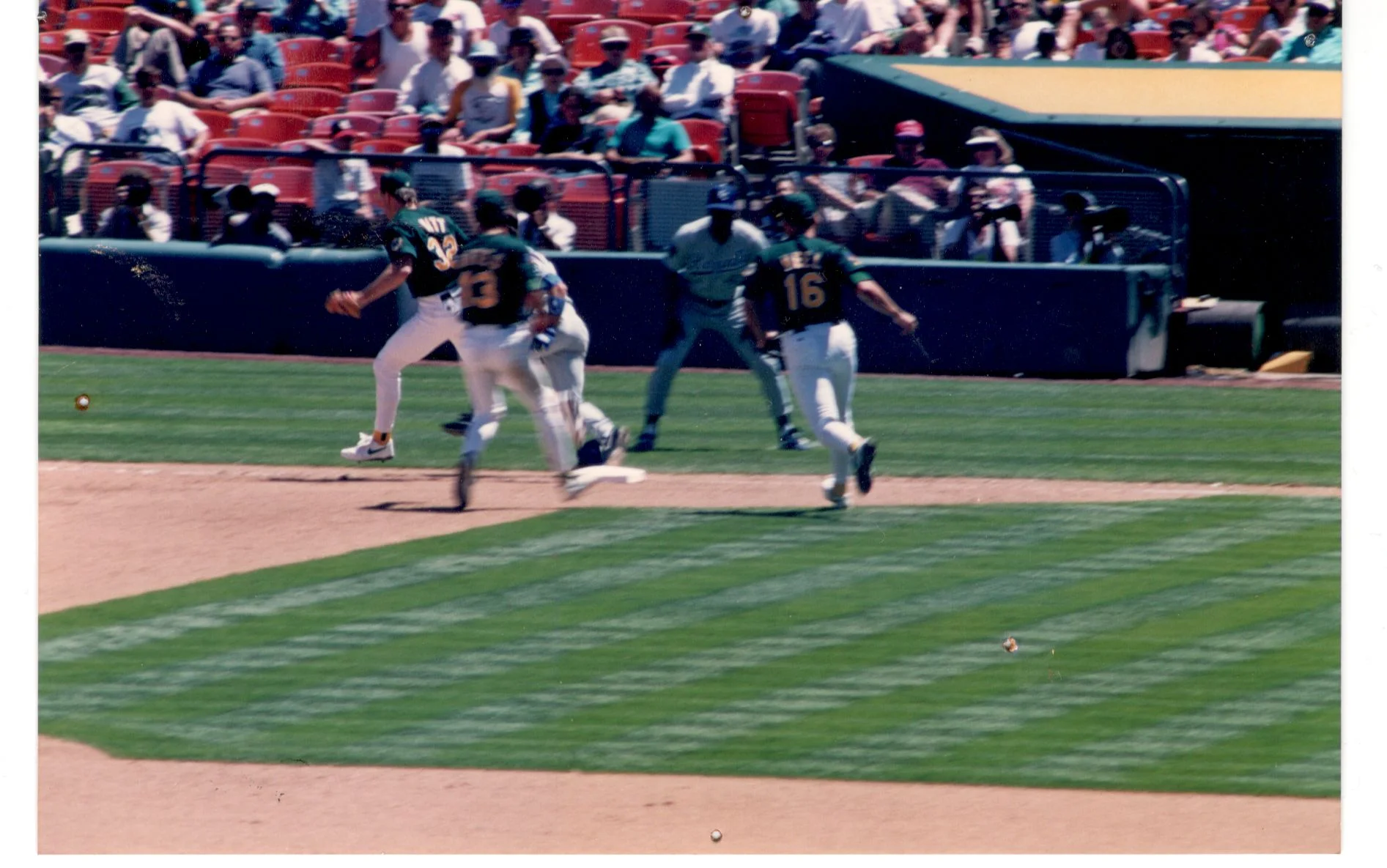 He’s right about that. I still remember a call at an Oakland A’s game in 1994. Bobby Witt was on the mound and he had a perfect game going. A perfect game! I was in the ballpark four years earlier when Nolan Ryan threw his sixth no-hitter. That was certainly a thrill. But this was a perfect game! Then in the 6th inning, with one out, Greg Gagne laid down a bunt and was called safe at first. Perhaps at a later date, I'll write about one of baseball's unwritten rules regarding breaking up a no-hitter with a bunt (but then I guess it wouldn't be unwritten?). Anyway, it was obvious to everyone in the admittedly partisan crowd that he was out. It was all very clear to me. I could not believe that the guy standing a few feet from the play got it wrong when I could clearly see he was out from the most excellent vantage point provided by my seat way out in the left field bleachers.